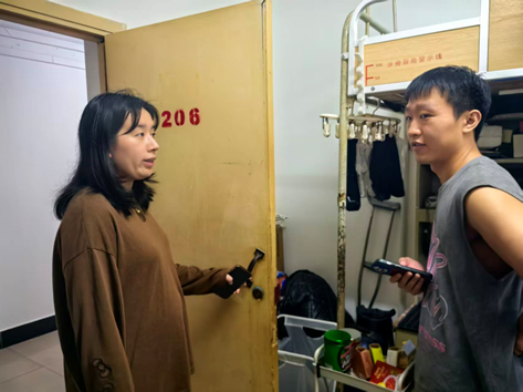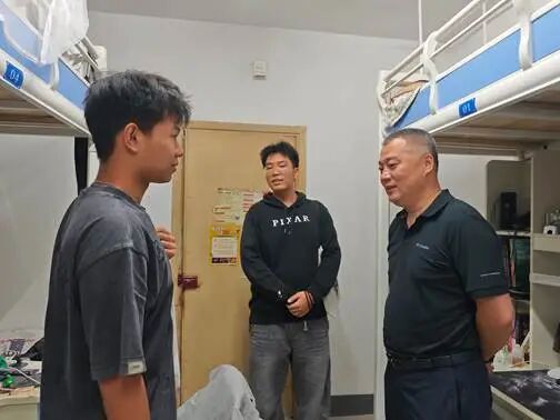 在走访学生宿舍的过程中,边建华书记与各位辅导员老师向同学们送上了节日问候,并对各寝室的用电用水安全进行了细致排查。老师们关切询问了同学们的假期安排,叮嘱离校同学注意旅途中的财产与交通安全,提醒留校同学规律作息、安全用电,共同营造团结友爱、健康和谐的宿舍氛围。