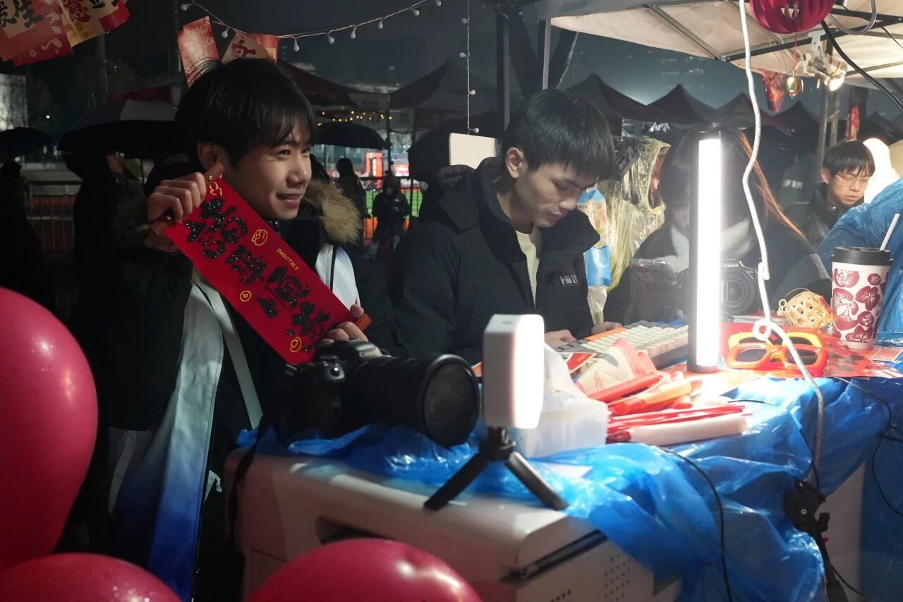 漆扇制作与拓印摊位聚焦传统文化传播,工作人员详细讲解工艺要点与操作流程,引导师生亲身参与创作,在实践中感受传统工艺的独特魅力,亲手完成的作品成为兼具纪念意义与文化价值的跨年信物。