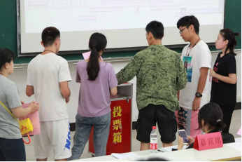 2018届学生会副主席焦培宣读第二届学生委员会委员选举办法及名单。在宣读完选举办法及名单后,总监票人和计票人上台领取分发了选票,并在其后撕毁了多余选票。紧接着,各位学代表认真填写了选票并有序上台进行投票。