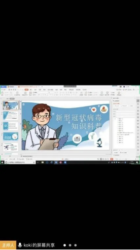 首先由班长利用线上软件“腾讯会议”共享屏幕,为大家讲解ppt。充分普及新型冠状病毒的相关知识,包括如何防范等等,强调了防范的重要性,同时向大家分享了疫情的最新进展,以及疫情发生的故事等等。了解疫情期间先进抗疫人物的事迹,感受祖国强大的凝聚力,充分激发同学们的爱国情绪。并且再次强调纪律问题,使同学们正确认识了不能提前返校的原因。