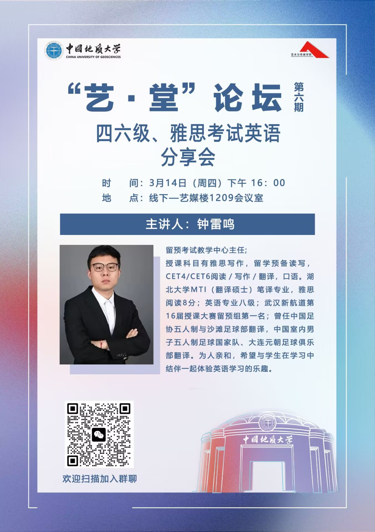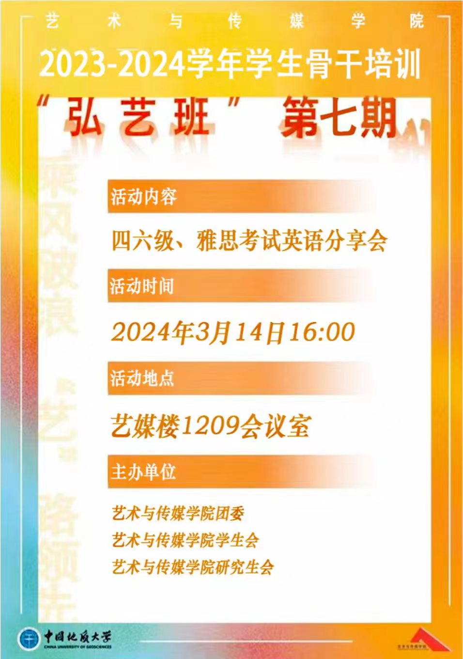 2024年3月14日下午16:00,“艺·堂”论坛第六期四六级、雅思考试英语分享会暨第七期“弘艺班”学生骨干培训于 韩国三级
