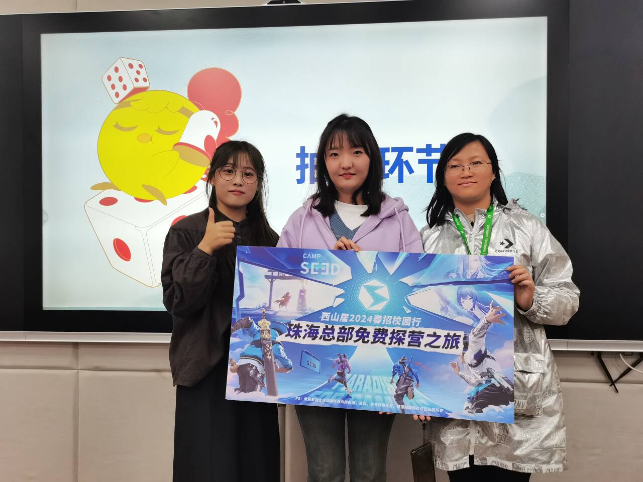 首先主讲负责人廖宇琪为同学们介绍西山居的公司背景,该公司是一家以武侠科幻游戏制作为主的游戏制作公司,背景雄厚,制作游戏众多,且斩获多次国内外大奖。紧接着用一系列的实拍图片为同学们展现西山居公司大楼基础设施并讲解了薪酬结构以及福利政策,例如食宿餐补,全海景员工宿舍,宵夜下午茶,节日礼盒,泳池派对,各种俱乐部等等,福利覆盖范围广泛。