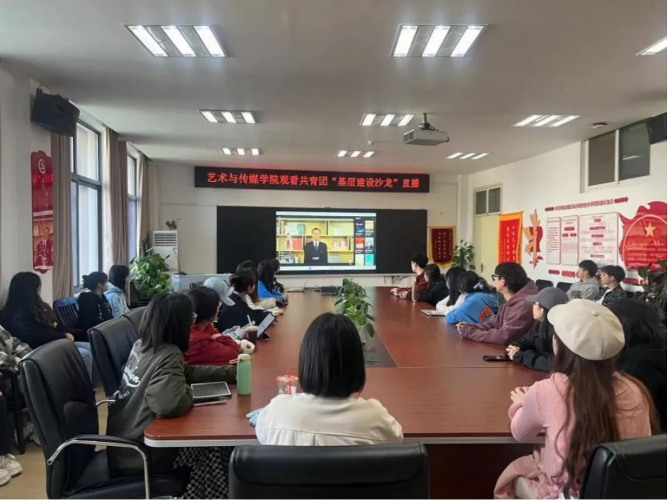 为深入贯彻落实习近平总书记关于共青团在学生思想政治工作中发挥主力军作用的重要要求,提高同学们的爱祖国意识,增强党性修养,3月28日, 韩国三级 学生骨干培训“弘艺班”第十期在1209会议室顺利进行,学生会、研究生会学生骨干在团委书记单湉艺老师的带领下集体学习观看第63期共青团“基层建设沙龙”直播与“学党史爱祖国教育”线上公益大讲堂。