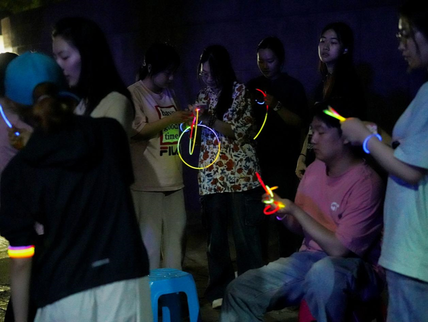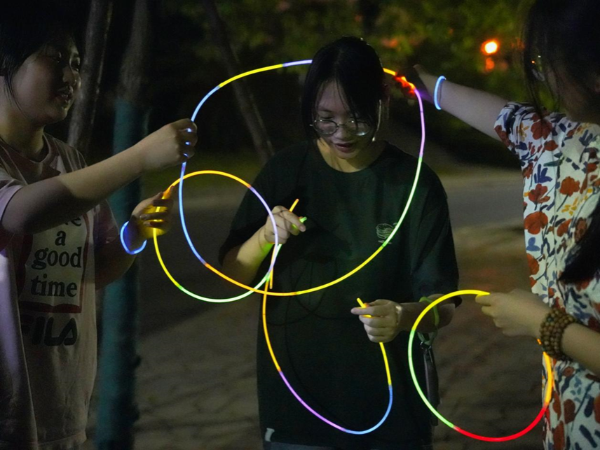 此次活动的路线从北大门开始,经由北综楼、艺媒楼、北区体育馆、北区隧道口、北区篮球场,最后至北大门结束。参赛同学在比赛过程中佩戴荧光手环,每经过一个任务点领取对应的手环。在夜幕中,每位夜跑的同学都散发着绚丽的色彩,肆意挥洒青春的汗水。