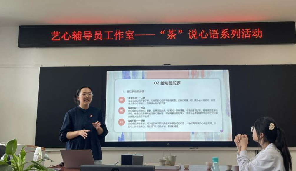 在快节奏的现代生活中,学生的心理健康日益受到重视,为了促进学生身心健康发展,响应《全面加强和改进新时代学生心理健康工作专项行动计划(2023-2025年)》的号召,学院艺心辅导员工作室在4月25日下午,于1209会议室举办了“茶”说心语系列活动的第二讲之彩绘曼陀罗。