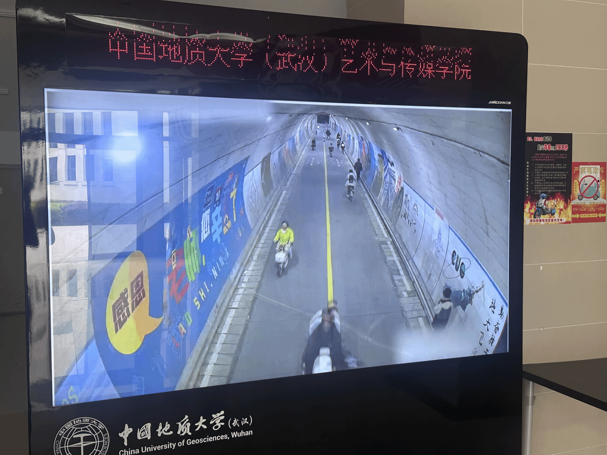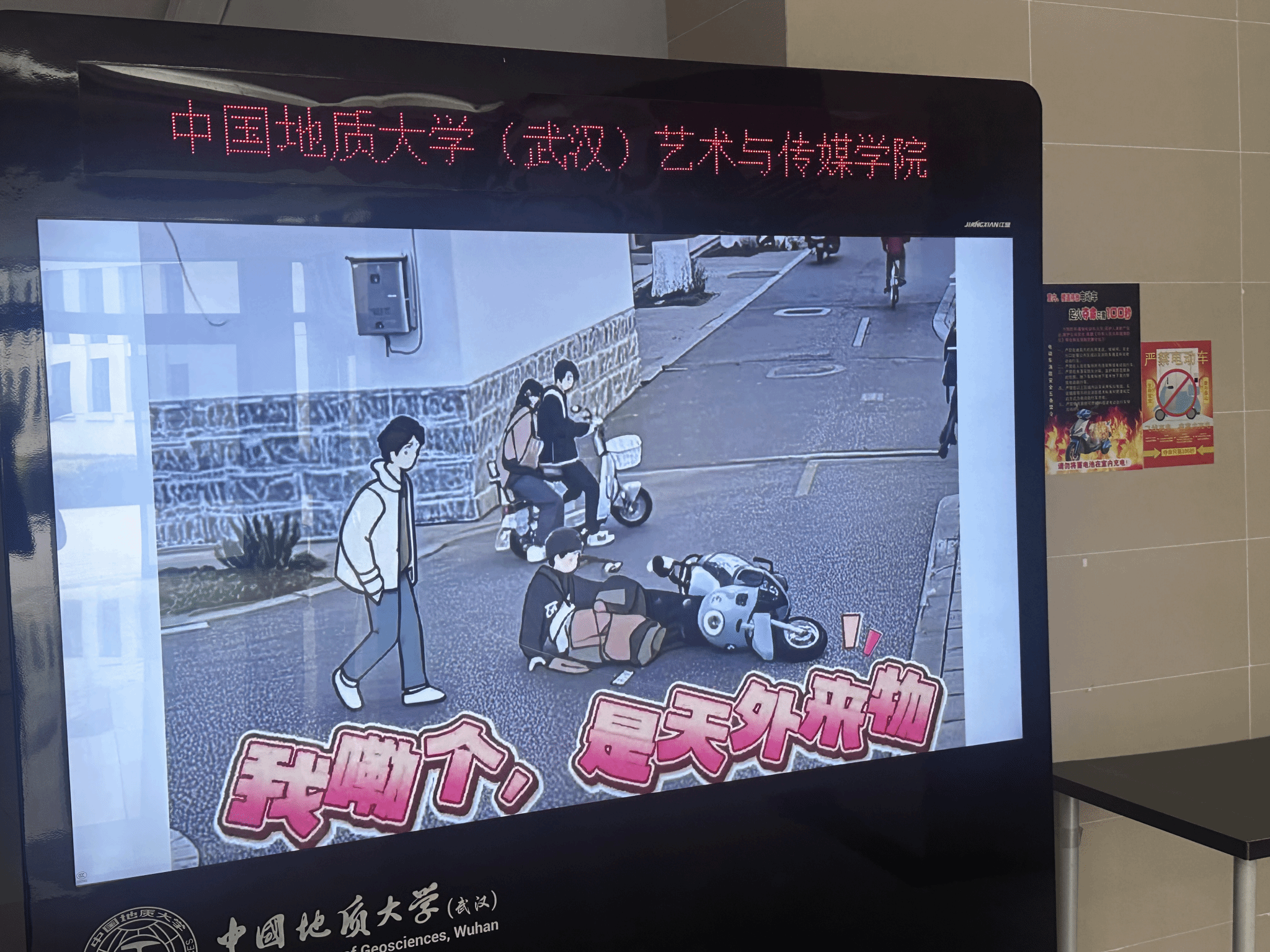 五、艺媒学院一楼电子宣传屏发布的电动车安全警示图片