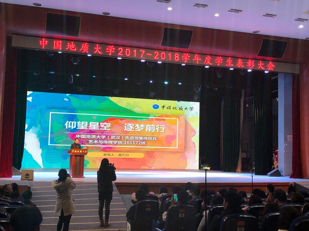 本科2017级161172班班长夏乙力同学作为年度先进班集体标兵获奖班级代表,以《仰望星空,逐梦前行》为题做大会主题发言,分享了韩国三级