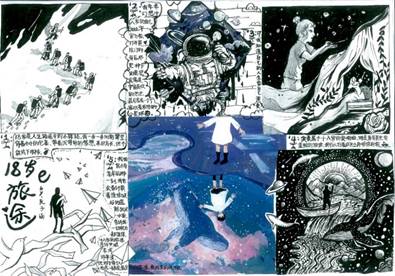 ,正值18岁这个美好的年纪,我想以此为主题,以作品为载体,记录一段特别的心路历程。十八岁是每个人人生经历中只有一次的宝贵回忆,我将我十八岁的历程里一幅幅总会浮现于脑海里的画面用视觉表现出来,一幕幕剪贴在一起,那些记忆深刻的画面体现了我十八岁的心路历程,或是幻想,或是自言自语,或只是碎碎念,但它却真实地记录着我的成长与思考,以此表现正在经历着十八岁的我,也是为了告诉自己:不管未来怎样,十八岁的那份勇气与单纯是无法摒弃的真实与美好。一等奖是个意外的惊喜。”