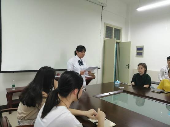 第二位是秘书部部长童瑶,她强调要加强各支部的联系,便于以后更好的开展各项工作,并且要加强党建办公室三个部门之间的联系,配合其他两个部门的工作。