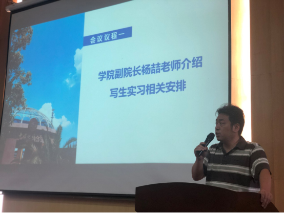副院长杨喆老师介绍写生实习相关安排。他从实习安排、外出安全等多方面向同学们讲解了写生实习的内容。