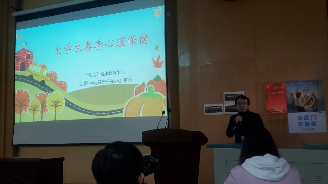 首先,黄海老师表示,许多事情都容易导致心理问题,而春季和学期交替时期为抑郁高发期,同学们更需要在这个时候多加注意,保护自己的心理。