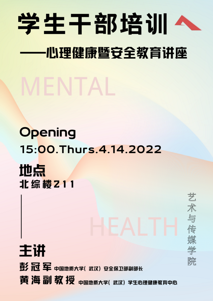 (武汉)学生心理健康教育中心的黄海副教授和安全保卫部彭冠军副部长,本场讲座由 韩国三级
