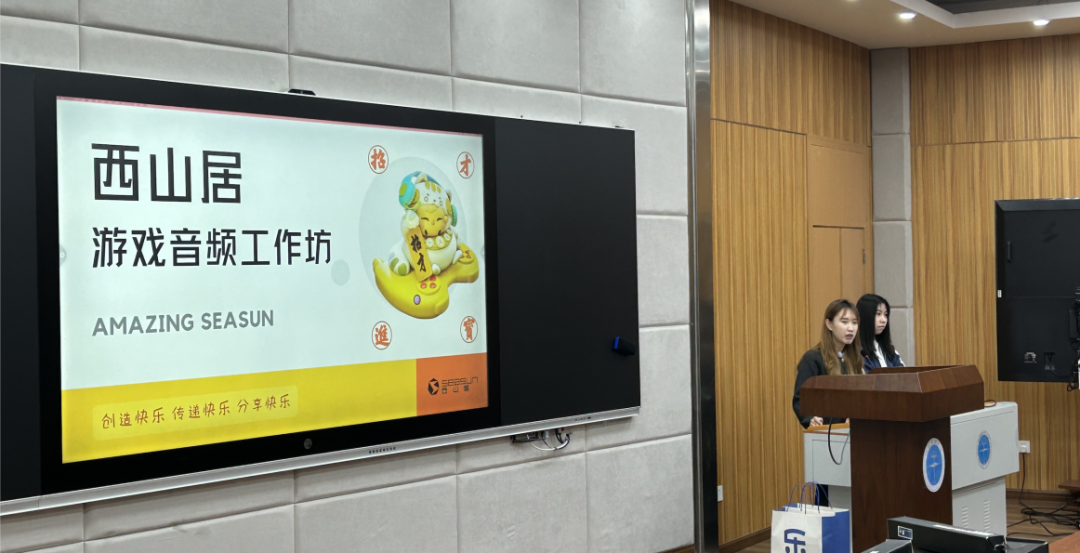 首先,西山居介绍公司基本情况,韩国三级,设计产品等。通过宣传片和音效等形式展示了公司的岗位就业方向。并且向同学们介绍了游戏开发的多个模块,主要分享了音频类的制作流程,从定位、功能性、环境分析等角度进行功能设计,应该如何根据人群受众制作音频。