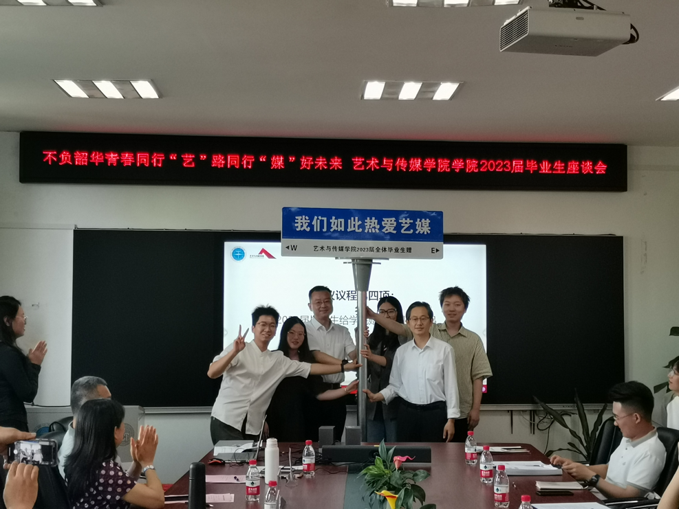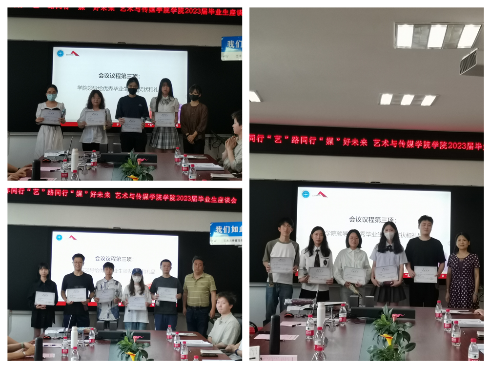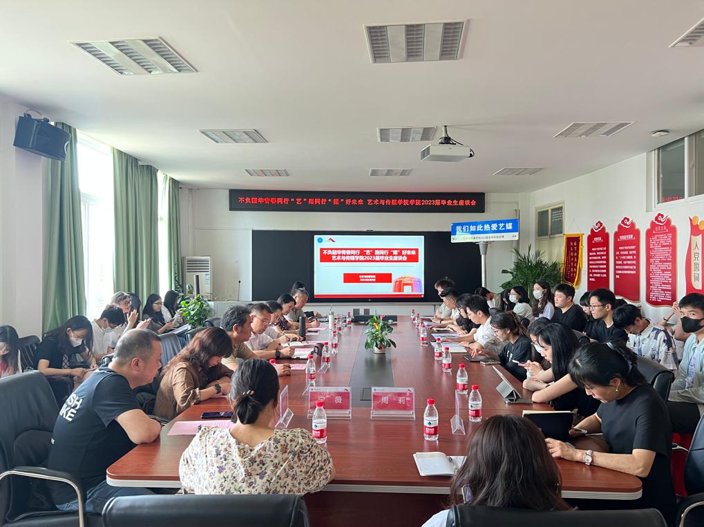在1209会议室开展以“‘艺’路同行‘媒’好未来”为主题的2023届毕业生座谈会暨院领导接待日,会议由党委副书记边建华主持,院领导班子、各系系主任、学工组专兼职辅导员、本科生优秀毕业生、研究生优秀毕业生参与会议。