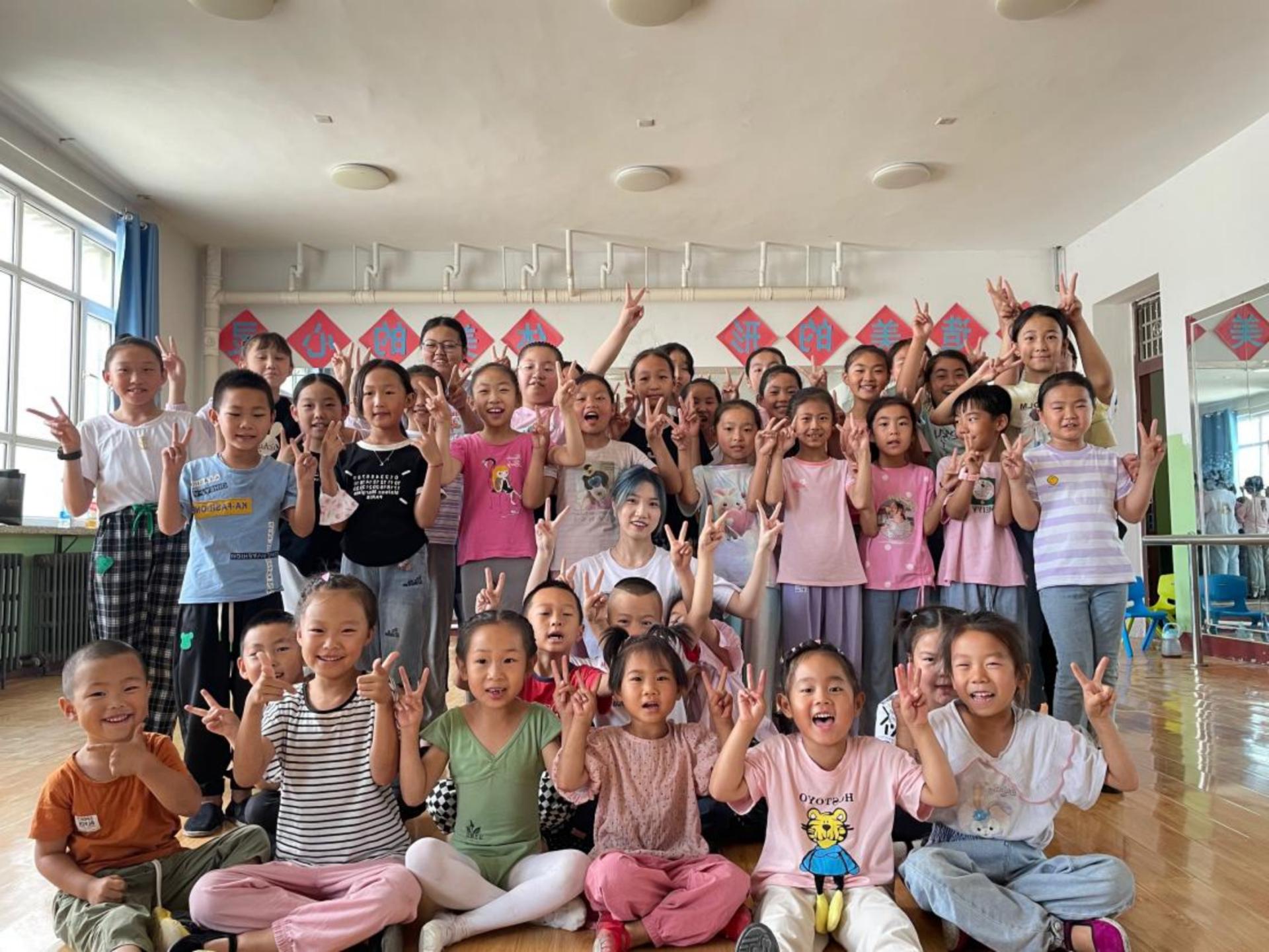 徐璐珈(小鹿姐姐):今天又来了新的小朋友。上午下午的课程安排是教小朋友们学习拉丁舞中的前进后退走步,复习之前教学的时间步等。小朋友们总是充满了好奇,有各种想法和问题,也充满了活力和创造力。休息期间和当地的小朋友学习了新疆舞的动作,感受到了民族舞蹈的魅力。