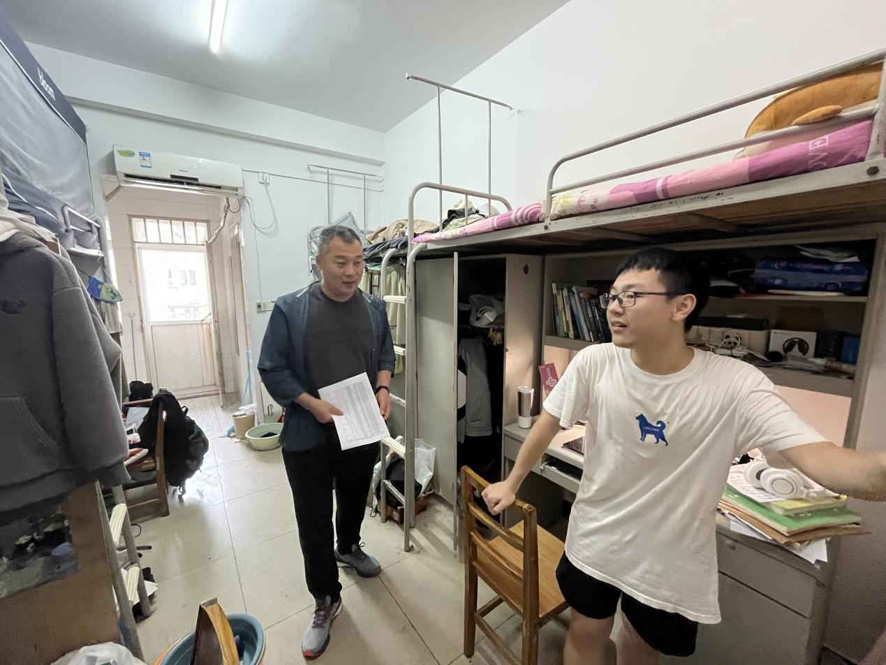 在走访宿舍过程中,边建华书记及各位辅导员老师为各位同学送上了节日祝福,并对各个寝室的安全隐患情况进行了相关排查,同时对学生假期计划进行了了解,提醒要离校的同学们在路途中要注意财产安全、交通安全,留校的同学们要注意用电安全,保持良好的生活作息,创建团结、友爱、健康的宿舍环境。