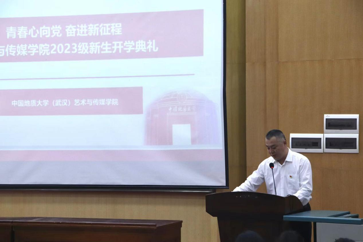 2023级新生开学典礼于西区教三楼109教室正式开始。学院党委书记晋曦,院长何清俊,副院长张梅珍、杨喆、袁玥、彭静,音乐系系主任周莉、党支部书记周黎,新闻传播系系主任宁薇、党支部书记尚媛媛,视觉与媒体设计系副主任徐莉,景观学系党支部书记程璜鑫、景观学系副主任程驰,学院办公室主任李伟娜,新生班主任王琦、曾珍、蔡爱新、郑丹丹,院直全体老师,以及全体2023级本研新生参加了此次开学典礼,活动由学院党委副书记边建华主持。