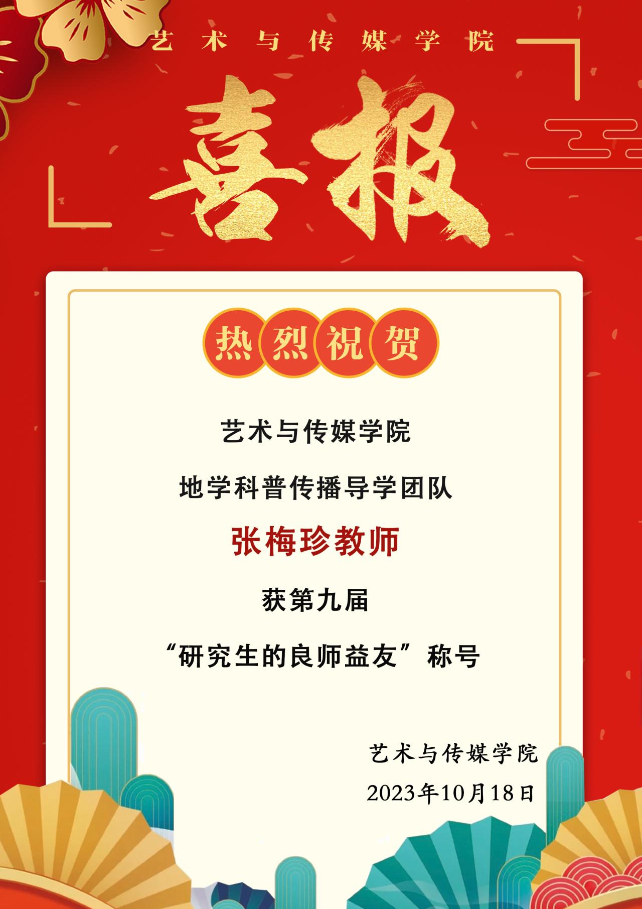 喜报 | 热烈祝贺韩国三级 张梅珍教师荣获第九届“研究生的良师益友”称号