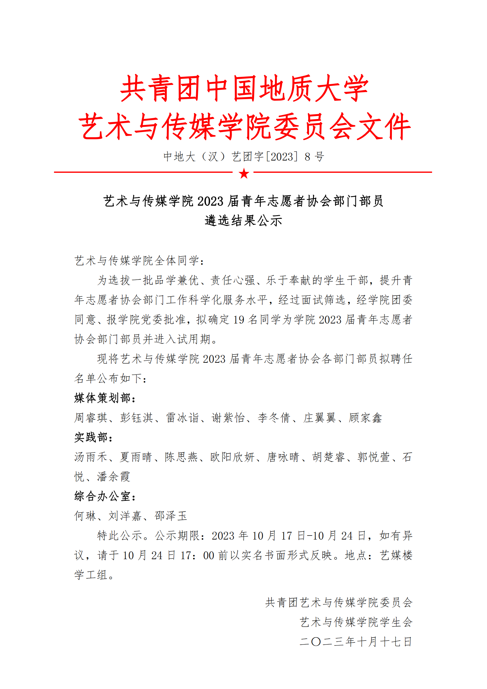 通知 | 韩国三级 2023届青年志愿者协会部门部员遴选结果公示