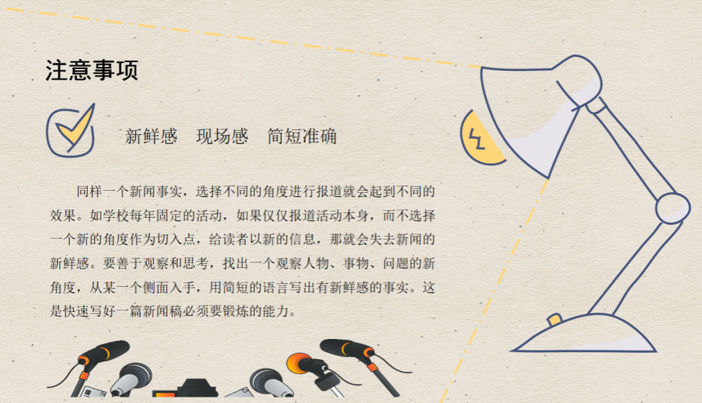 第一部分,曾戈晖老师就“新闻稿撰写”展开学生培训,首先从“新闻要素”、“新闻结构”两方面对新闻稿内容进行剖析解读,总结了其重点内容与行文规范。随后从“如何写好一篇新闻通讯稿”对同学们进行进一步的指导,以长期积累、模仿超越、现场实践三个方面讲解撰写新闻稿的方法,分享心得体会,并对相关案例解析示范。
