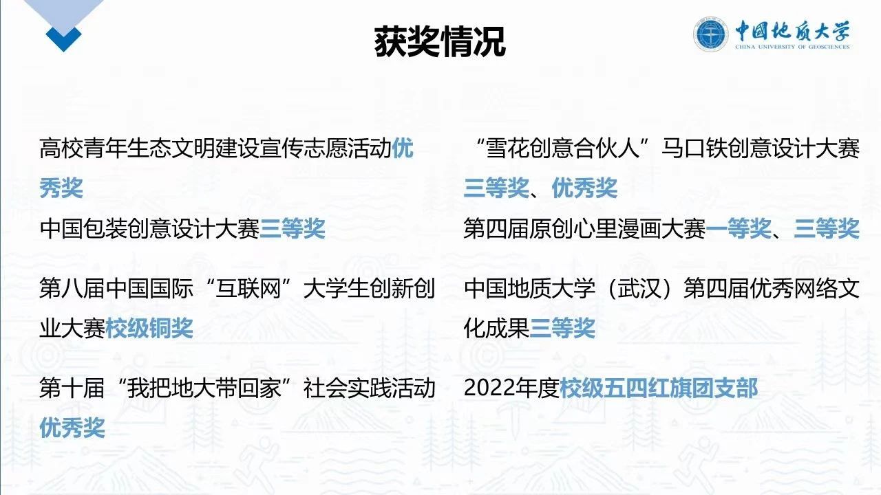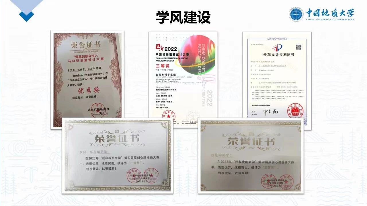 大家在学习上十分努力,班级成员贾淳璐申请了玩具外观设计方面的国家专利,并且也获得了第八届中国国际“互联网+”大学生创新创业大赛校级选拔赛的铜奖;钱炫宇获得了雪花啤酒创意大赛的优秀奖,原创心理漫画三等奖;罗熙获得原创心理漫画大赛一等奖;刘武科获得廉政文化宣传设计大赛优秀奖等等。