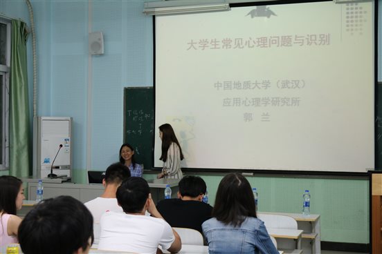 (武汉)应用心理学研究所所长、硕士生导师郭兰教授担任主讲人。郭兰教授就大学生心理健康教育、心理咨询与危机干预、创伤后应激障碍与干预的领域和同学们进行了交流。