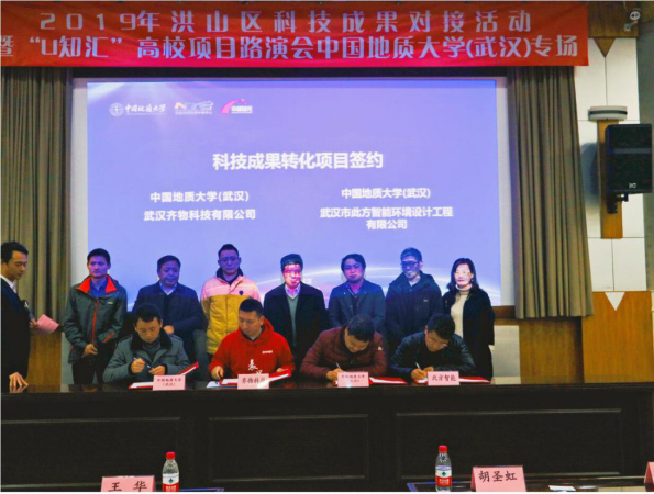 签约了相关科技成果转化项目。截止目前与学校联合开发项目已有五次,并获得11项国家专利,6项软件著作权,现已是武汉市科技“小巨人”企业,湖北省科技型中小企业。此方作为从事城市公共空间交互体验全案设计方面的公司,在设计类企业中少有的获得了国家高新技术企业的授牌及40万政府奖励。