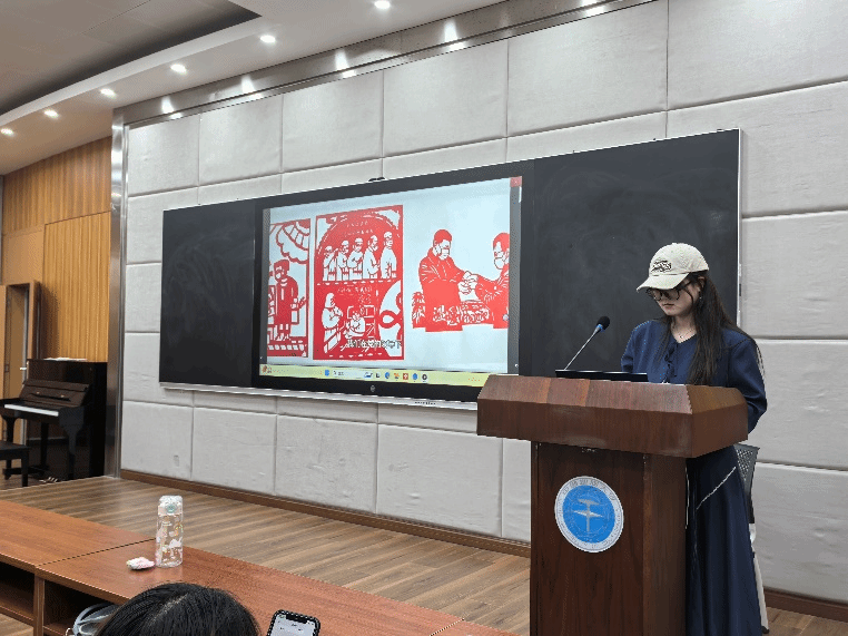 杨小茹团队通过列举我国非遗响应党的二十大的案例,如:漆扇、打铁花、中国剪纸等,以讲、展、播等多元形式展示艺术党课,促使各支部党员在感受非遗魅力的同时,能够更加深入地领会党的二十大精神,将其内化于心、外化于行。