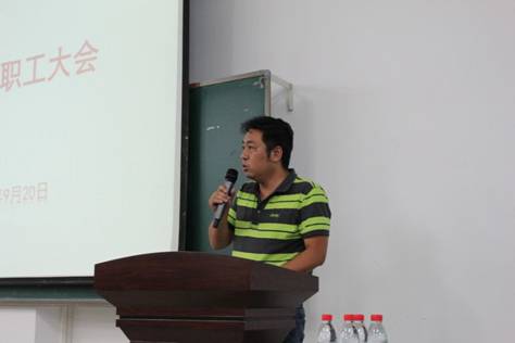 最后,院长桂宇晖向全体教职工传达了学校新学期工作布置会的精神。他结合学院实际,强调教师的神圣职责是教书育人,每位教师都应以培养一流人才为己任,充分发扬主人翁意思,推动学科进步,助力学院发展。