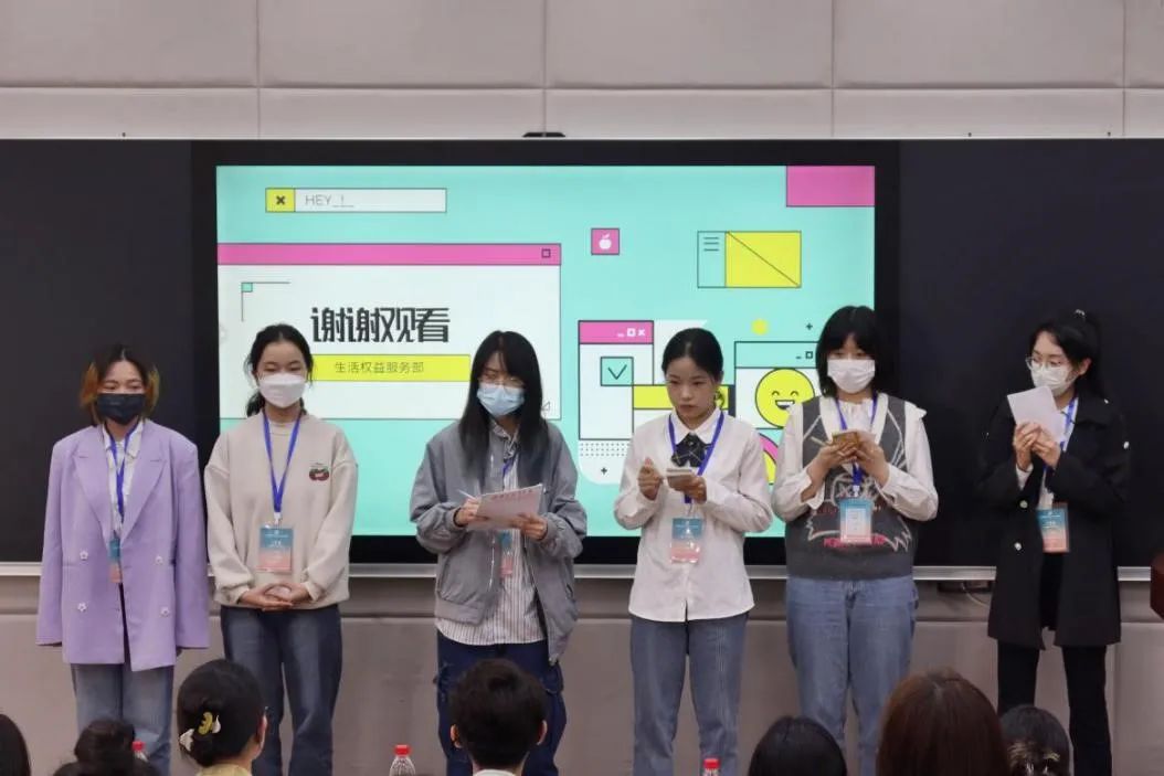 第一个答辩部门为体育部,向大家介绍了体育部以“积极活泼乐观、公平公开公正”为宗旨开展的包括秋季运动会、跳绳比赛等的相关工作,并就这些活动的开展流程与部员分工安排进行了介绍,并表示体育部未来将会更加守正创新,追求卓越,举办更多强身健体的活动。