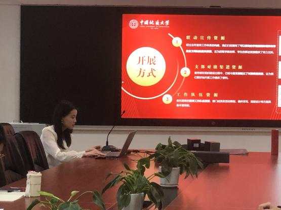 在1209会议室召开2024年党建立项暨支部风采展示答辩会议,以项目制形式加强学生党建工作,以评促建,提质增效。学工组专职辅导员单湉艺、兼职辅导员于梦涵、徐雯茜出席并担任评委,本、研十个学生党支部及党建办部门参与答辩,会议由辅导员单湉艺主持。